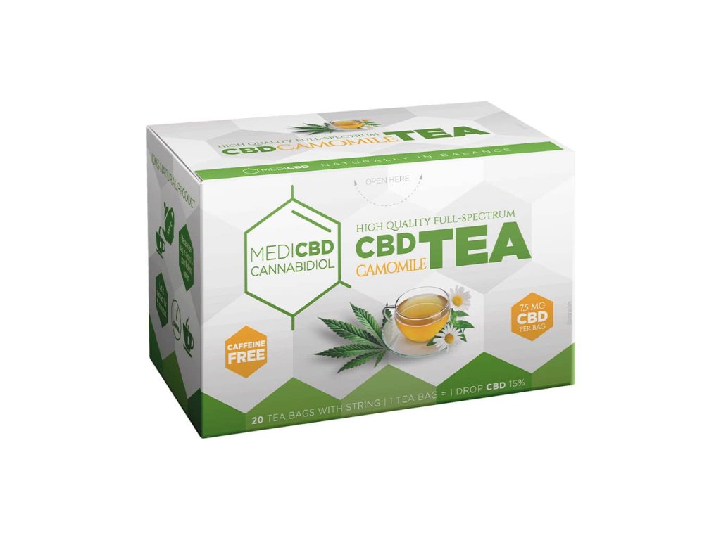 MediCBD Heřmánkový čaj spojuje tradiční zklidňující účinky heřmánku s přírodní silou CBD. Každý čajový sáček obsahuje 7,5 mg CBD, zatímco obsah THC je 0 %, takže produkt splňuje požadavky evropské legislativy.