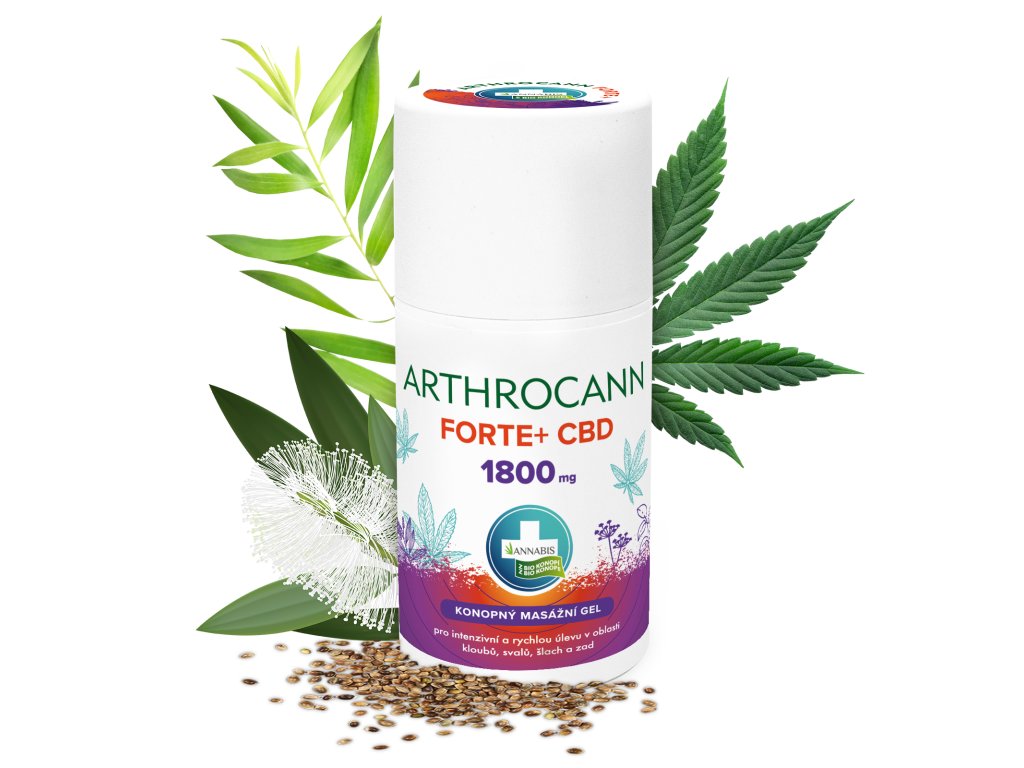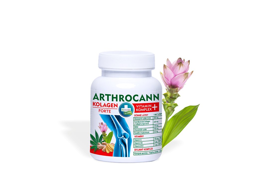 Obsah: Arthrocann Gel Forte+ 1 800 mg CBD 90 ml + Arthrocann Kolagen Vitamin Komplex+ 60 tbl