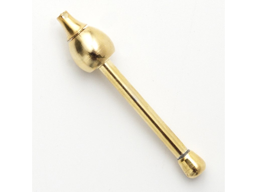 Praktická kovová šlukovka ve zlatém provedení, vybavená očkem pro snadné připevnění na klíče. Stylový a kompaktní doplněk, který máte vždy po ruce.